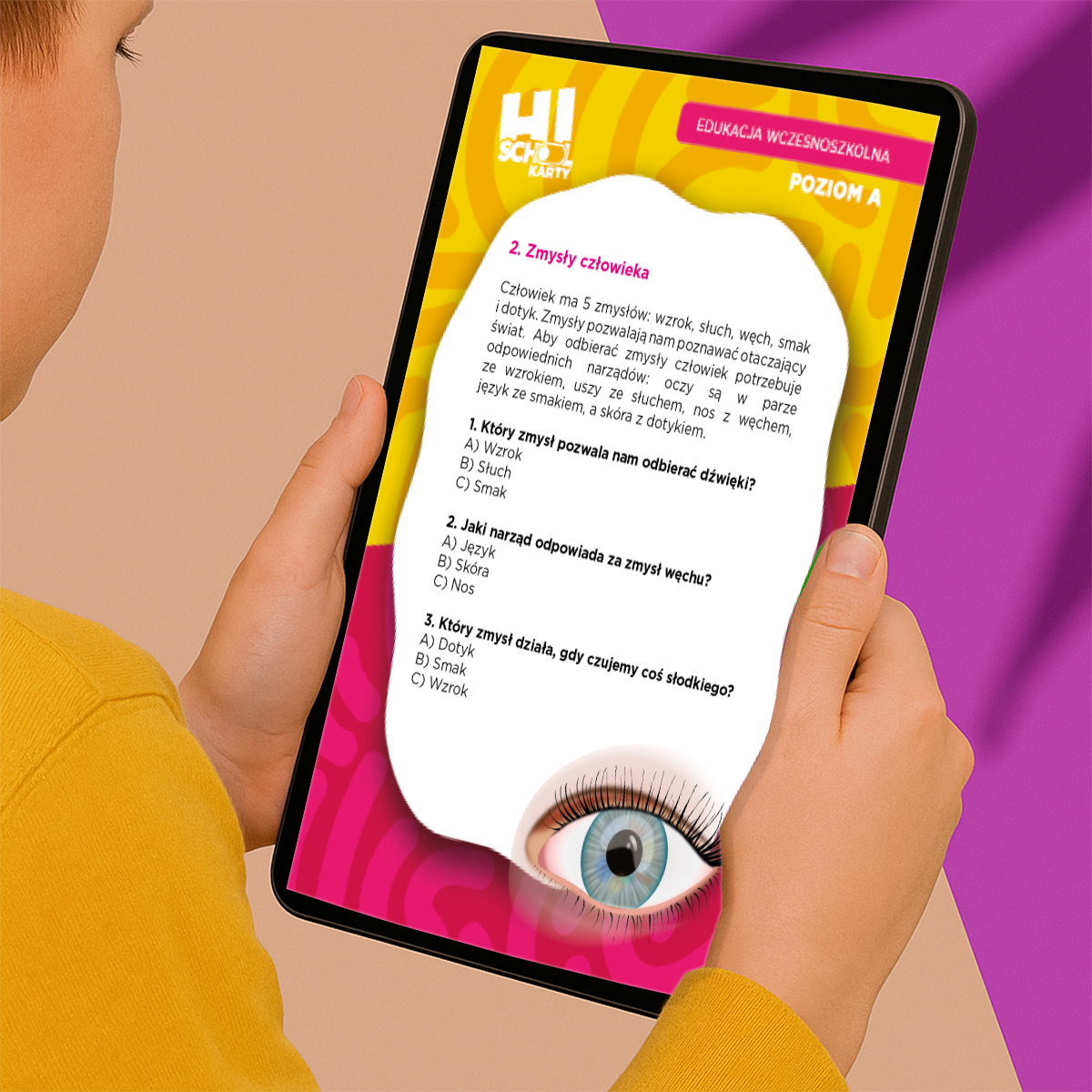 Dzięki kartom Hi School z łatwością pomożesz dziecku w wieku 5-9 lat opanować materiał z klas 1–3 szkoły podstawowej – bez stresu i presji.